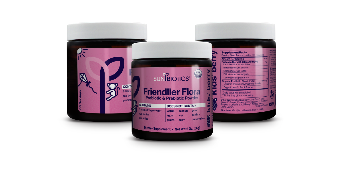 Sunbiotics is honored to introduce our Just4Kids formula - a potent dairy-free probiotic powder enhanced with organic superfoods that both you and your kids will love.
