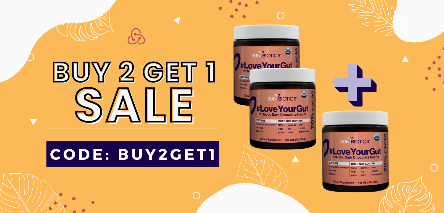 Show your gut some love! Buy 2 #LoveYourGut probiotic chocolate hearts today and get a third jar FREE! Limited inventory available. Deal active while supplies last. Valid for One Time Purchase only.